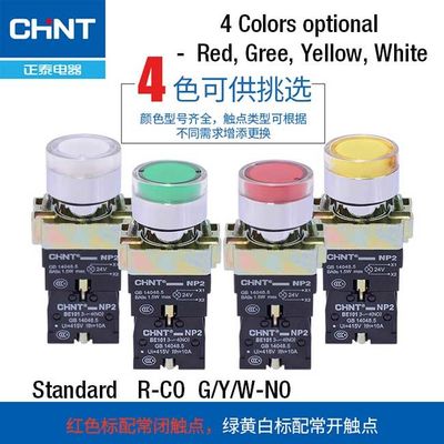 रंग एनपी 2 श्रृंखला पुश बटन स्विच प्रबुद्ध, फ्लश हेड रेड, ग्रीन, यलो, व्हाइट 12 वी, 24 वी, 110 वी, 230 वी 1 एनएन 1 एनसी एसी 380 वीडीसी 970 वी